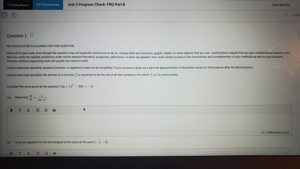 Solved College Board Ap Classroom Unit 3 Progress Check Frq Chegg Com